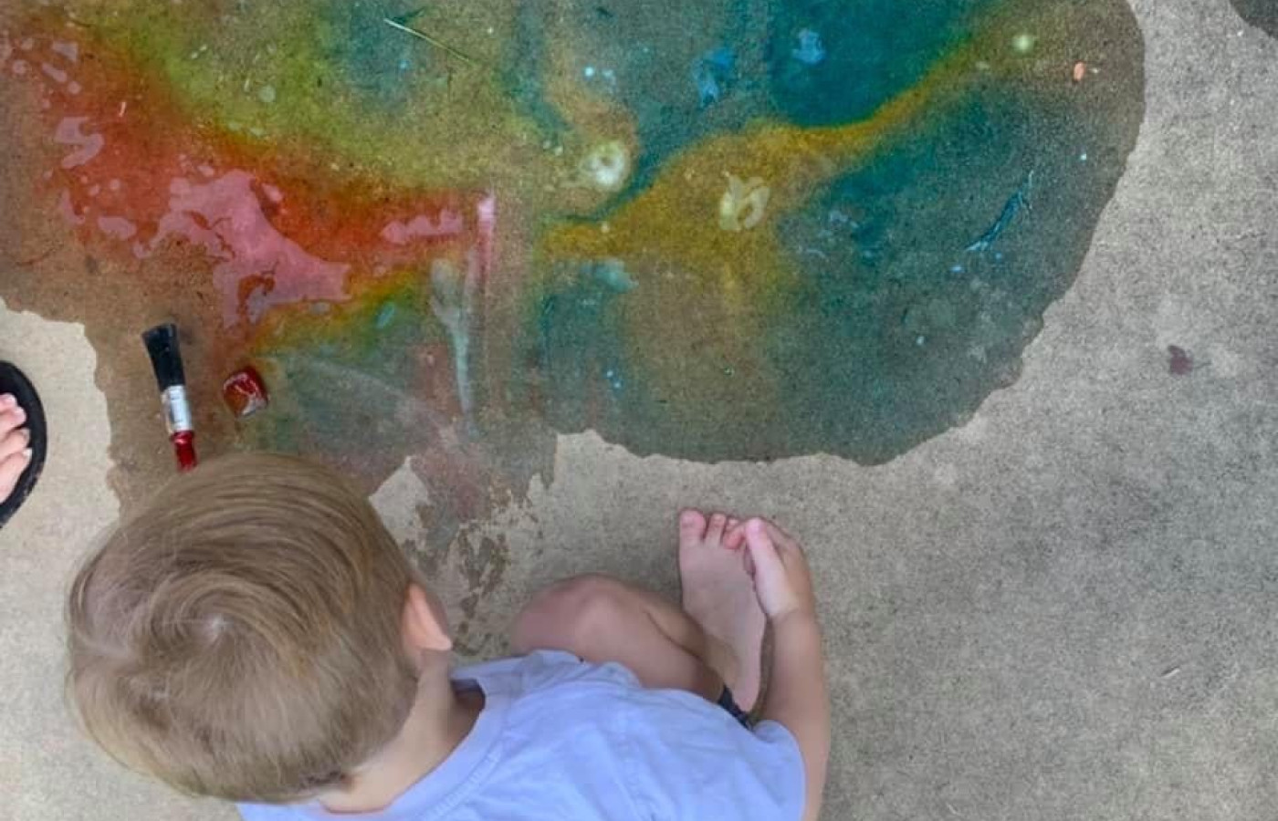 2. Select the location to set up the activity/experience where messy play is okay, a concrete area would be perfect, be mindful that food dye can stain.